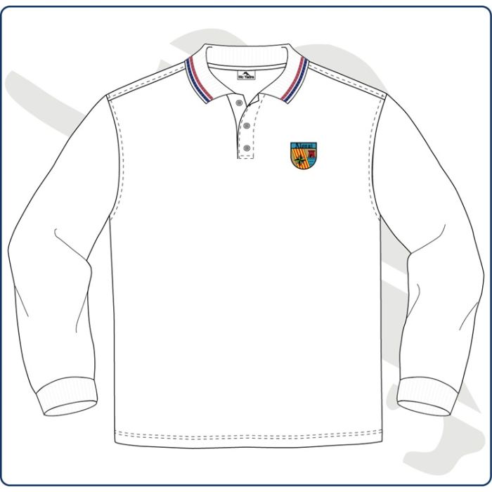 - Polo colegial de manga larga, realizado en pique con cuello y parte final de las mangas en canalé.